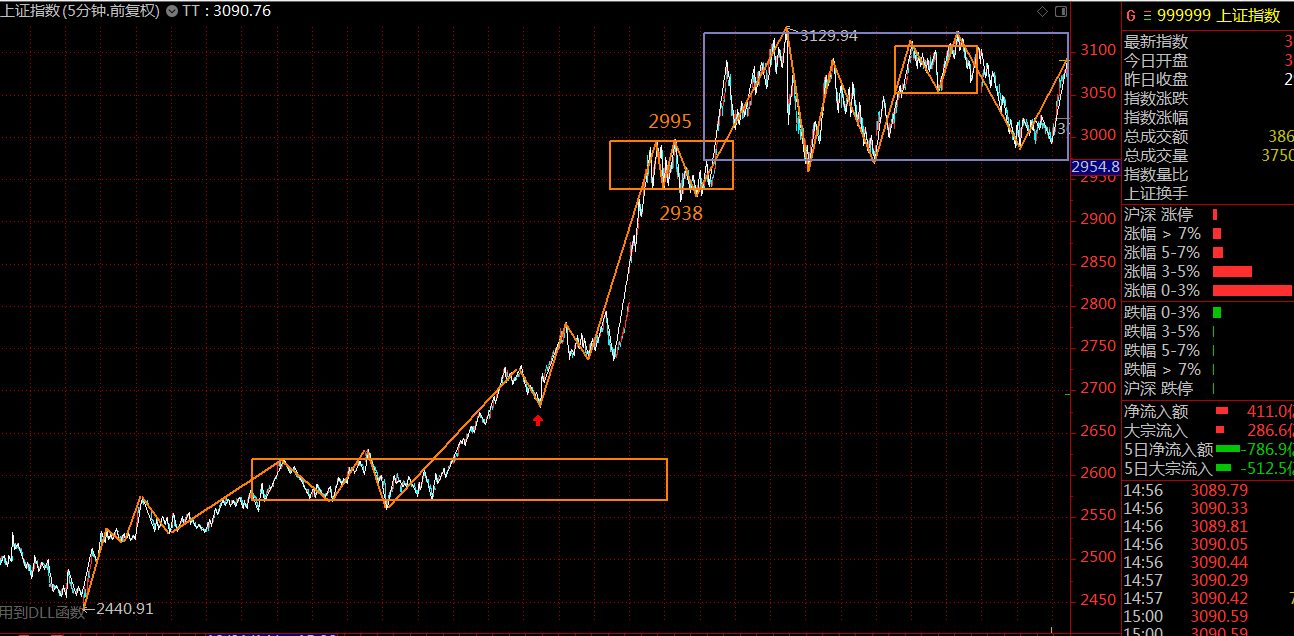 上證指數(shù)方面,這個位置的30分鐘中樞已構(gòu)建完成,調(diào)整隨時可以結(jié)束,方向選擇待定,關(guān)注30分鐘中樞上軌3125點壓力,30分鐘中樞下軌2968點支撐。就目前的市場情緒來看,傾向于向上突破中樞,構(gòu)建30分鐘的第三類買點(突破中樞上軌后,回調(diào)段不破中樞上軌)。