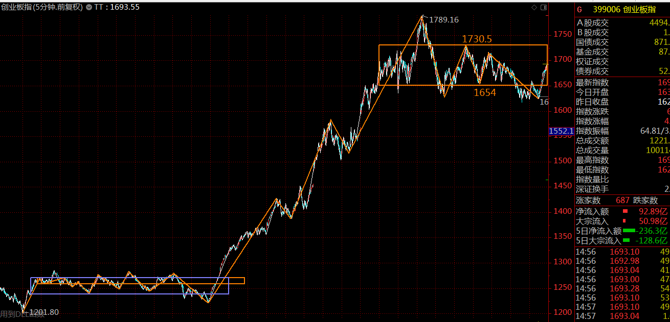 創(chuàng)業(yè)板方面,前面一段走的比較強勢,這里僅構(gòu)建了一個五分鐘級別的中樞,整體走勢上要強于主板,這里還是先看中樞級別擴展,兩相結(jié)合,下周兩市大概率會以強勢震蕩、蓄勢突破為主。