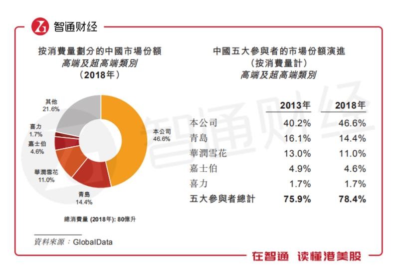 以中國市場為例,按銷量計,2018年百威在中國啤酒市場的市占率為16.4%排名次于華潤雪花和青島啤酒(00168)位居第三位。但在高端及超高端啤酒領(lǐng)域,百威的份額達到46.6%,遙遙領(lǐng)先。