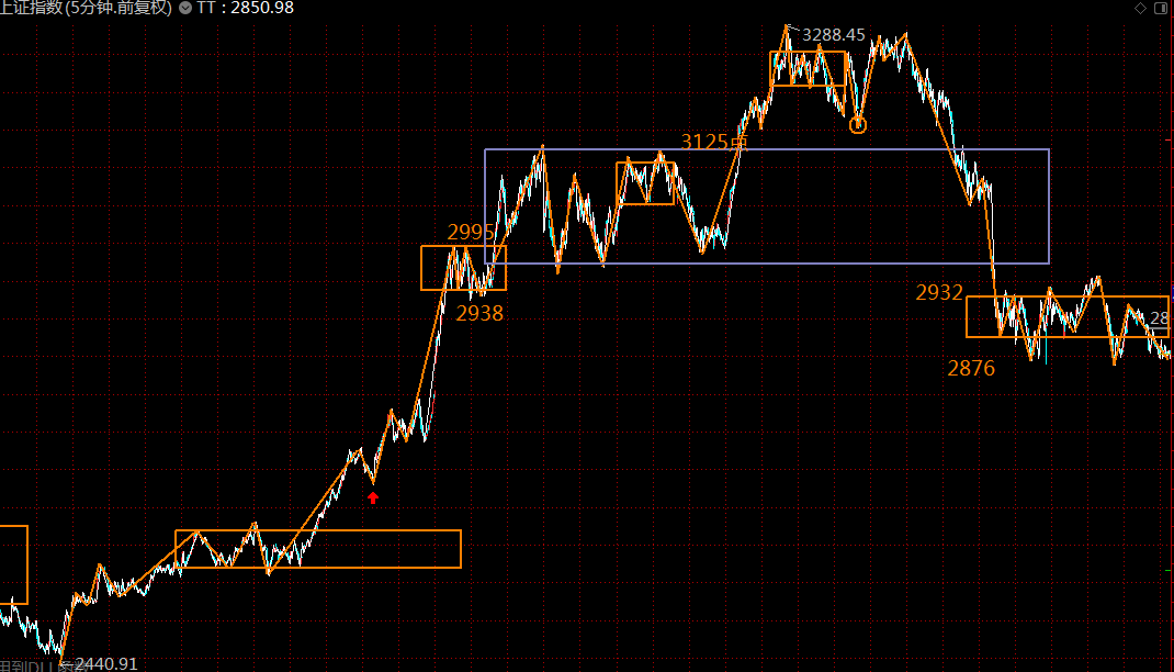下圖為上證指數五分鐘級別走勢結構,第三類賣點已過,第一類買點正在構建中,預計最差的情況,周一周二即可走完這波調整走勢,第一目標回補上方3050處的貿易戰(zhàn)缺口。