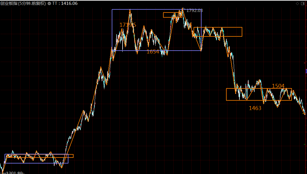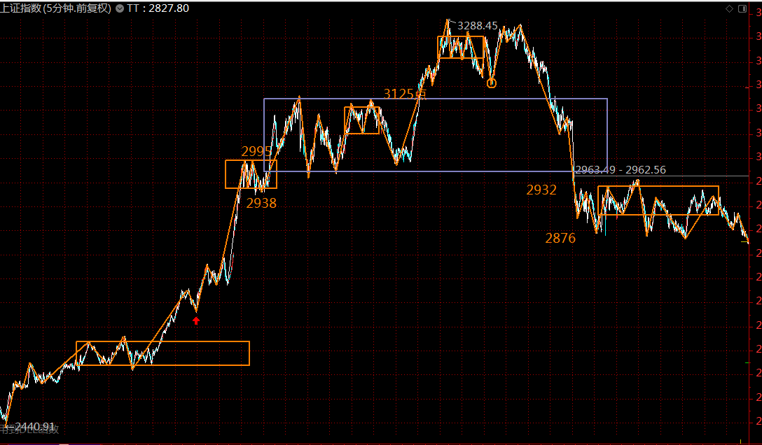 下圖為上證指數(shù)五分鐘級別走勢結構。短線看,上證指數(shù)這段從2934點開始的回落線段,已進入空頭陷阱區(qū)域,本周初將完成下方五分鐘中樞的第一類買點構造,突破2940點之后,上漲趨勢將開啟,目標3050-3100之間。