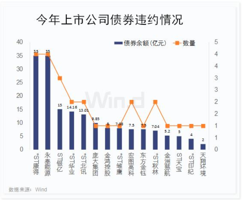 Wind數據顯示,今年以來,兩市共有15家A股上市公司累計27只債券違約,涉及債券余額總計176.24億元。