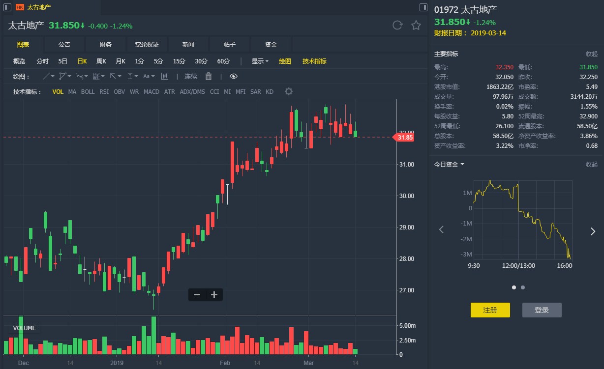 野村發(fā)表研究報告稱,太古地產(01972)去年核心純利達101億元,較預期高6%,核心業(yè)務及物業(yè)租賃均錄得8%以上增長,認為業(yè)績正面,維持對其“買入”評級,目標價33.5元。