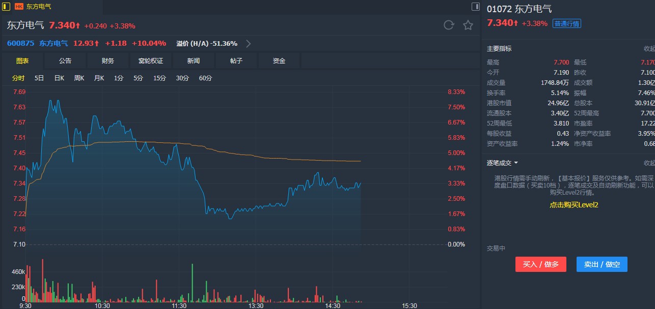 中金發(fā)表研究報告,東方電氣(01072)2018年表現符預期,考慮到風電、核電業(yè)務有望實現增長,將2019年盈利預測上調12%到14.4億元人民幣。