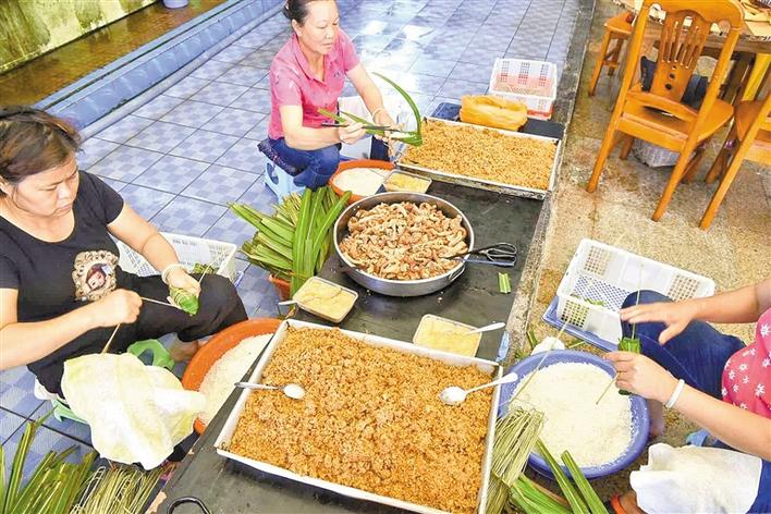 平時,玲姐是一位家庭主婦,每年端午節(jié)前她就變身為“包粽高手”。2017年,張長妹的酒家創(chuàng)下了銷售海膽粽4萬多條的紀(jì)錄,最高峰的一天足足包了4000多條海膽粽,玲姐一個人就包了1000條,也創(chuàng)下了個人紀(jì)錄。“從早上7點包到晚上差不多12點,最后腰都快直不起來了。”玲姐說,從六七歲就開始看著家里的大人包海膽粽,南澳人包粽技巧都是靠耳濡目染,“小時候,家里老人不讓我們包糯米,只能用沙子來練習(xí)。”