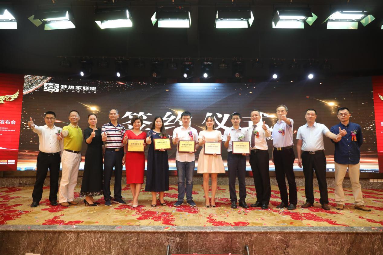 在接下來的授牌儀式中,夢想家聯(lián)盟分別同深圳市沃爾核材股份有限公司、匯天控股智匯牛科技有限公司、深圳云智方科技、佳得寶家居、善之泉環(huán)??萍己炗喠藨?zhàn)略合作協(xié)議并授牌。