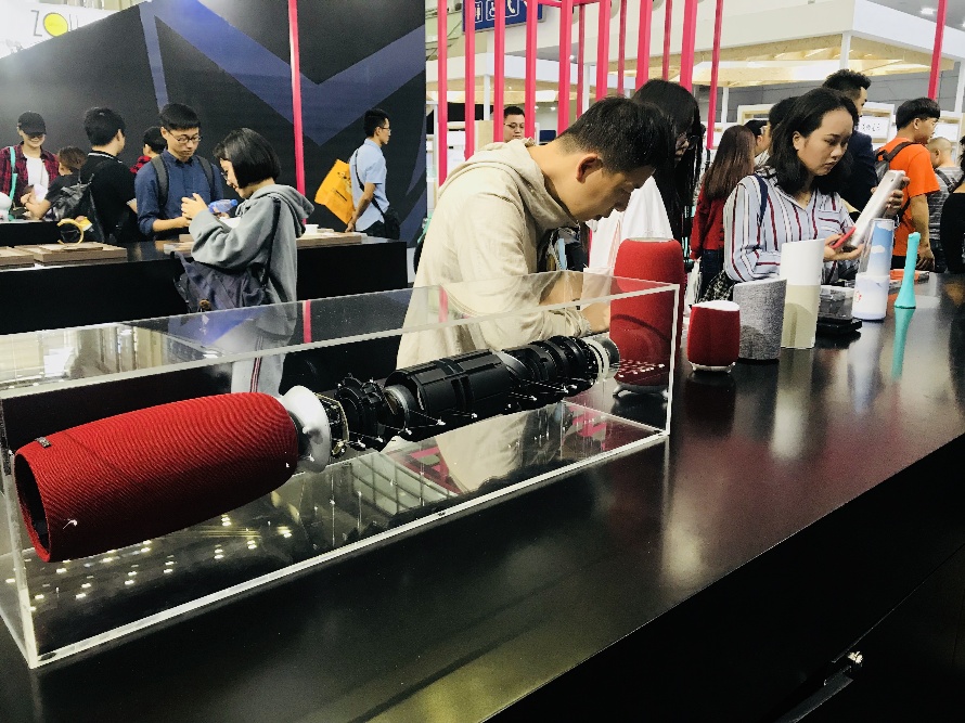 現(xiàn)場展出的小雅AI音箱是國內首款全內容智能音箱,是洛可可為喜馬拉雅所設計。設計過程中的眾創(chuàng)環(huán)節(jié)覆蓋了37.5萬用戶,2.5萬用戶直接參與。洛可可助力喜馬拉雅將內容載體從APP“搬到了”產(chǎn)品中,拉開了國內音箱創(chuàng)新變革的帷幕。而現(xiàn)場展出的曉雅mini AI音箱則是迭新之作,產(chǎn)品的底部使用穩(wěn)定的三腳支撐設計,減小與桌面的接觸面積,有效避免共振現(xiàn)象引起的音質受損。
