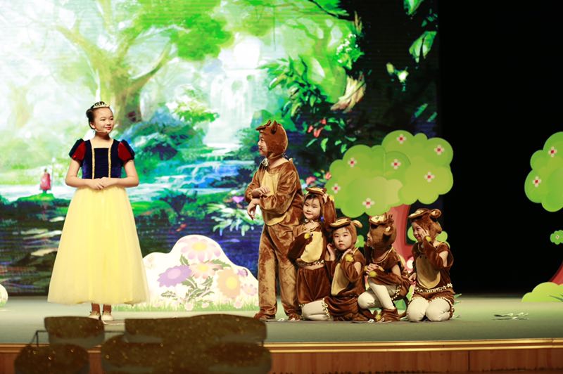 現(xiàn)場表演精彩紛呈,內(nèi)容積極向上,形式豐富多彩,表演生動逼真,充分展示出選手們奮發(fā)向上的精神風貌,同時也展現(xiàn)了選手們的外語實際運用能力和自主創(chuàng)新精神。《三打白骨精》、《睡美人》、《冰河世紀》、《獅子王》、《皇帝的新裝》、《白雪公主和七個小矮人》、《小紅帽》、《馬良的神筆》……一個個經(jīng)典的童話故事,惟妙惟肖的表演,生動的詮釋著故事里的每一個角色,把觀眾帶入一個個美麗的童話世界。