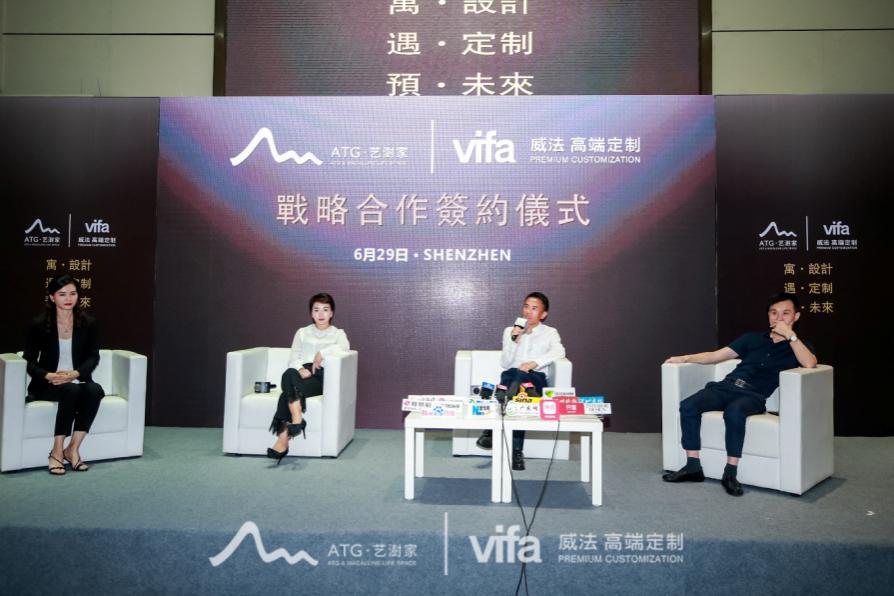 6月29日下午,ATG·藝澍家 & vifa威法戰(zhàn)略合作簽約儀式在紅星美凱龍深圳香蜜湖商場舉行,vifa威法董事長楊煉、總經(jīng)理王超及威法高端定制核心區(qū)域代理商們悉數(shù)到場,與ATG·藝澍家CEO張富麗、來自ATG亞太國際的設(shè)計師團(tuán)隊等就跨界合作議題展開深入的交流溝通?,F(xiàn)場火花碰撞,在高端家裝市場領(lǐng)域深耕多年的雙方領(lǐng)導(dǎo)分享了對“高奢住宅定制”的理解,坦言行業(yè)痛點,剖析行業(yè)趨勢,并就當(dāng)前高奢定制市場發(fā)展的現(xiàn)狀以及問題展開全面探討。