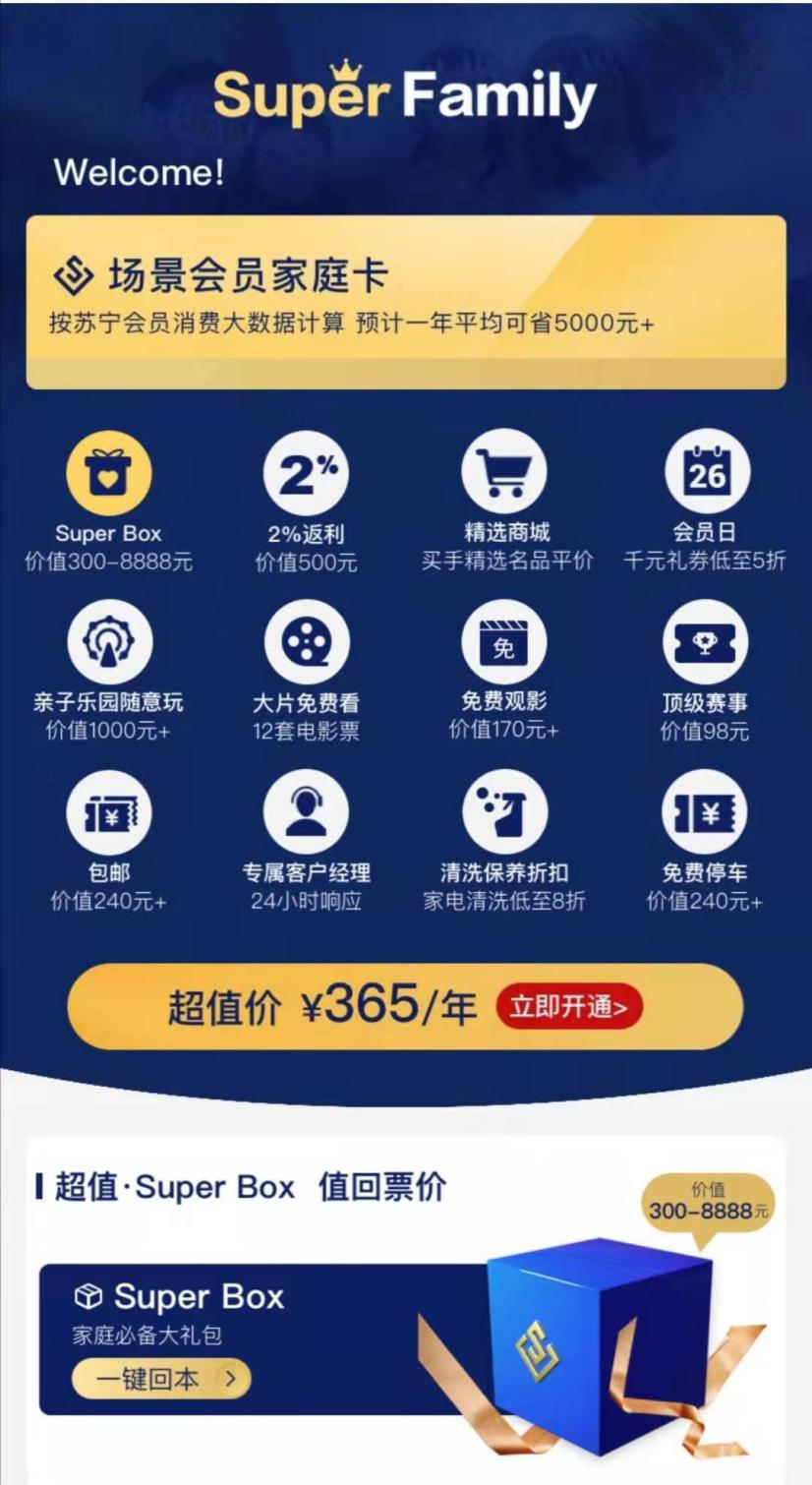 “在設(shè)計(jì)這款會員產(chǎn)品時(shí),我們希望能觸達(dá)每一位家庭成員?!碧K寧相關(guān)負(fù)責(zé)人解釋說:“比如媽媽,她用的更多的可能是購物,那么家庭會員有購物2%的返利;爸爸可能喜歡體育,我們有頂級賽事的觀賽劵贈送;對于孩子,我們提供了免費(fèi)游玩樂園、免費(fèi)看電影、免費(fèi)停車等福利,讓全家人盡情享受親子時(shí)光。”