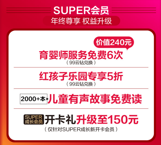 即日起,上蘇寧易購參與蘇寧紅孩子“年終狂歡搶購盛典”活動,10點、15點、20點整點搶2019元母嬰神券,進入蘇寧拼購小程序最高可領取8元膨脹紅包。全國近200家蘇寧紅孩子門店還推出滿30元減30元神券限量砍,99云鉆免費兌換育嬰師服務、紅孩子樂園5折優(yōu)惠等。