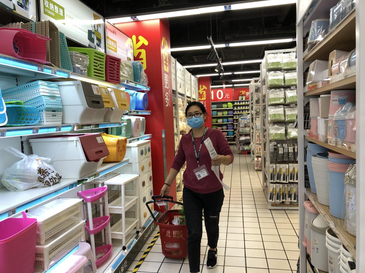 “現(xiàn)在手上這個(gè)單有24個(gè)商品需要揀貨,這還不算大單,我們有接到過一單上百個(gè)商品的,還有總價(jià)超過3000元的訂單呢。家樂福梅林店的賣場(chǎng)面積大概是5000平方米,每天上下2層樓跑多少趟具體倒是沒有統(tǒng)計(jì)過,但像現(xiàn)在特殊時(shí)期,我們一天在網(wǎng)上接到的‘配送到家’服務(wù)訂單基本都要超過800單,有時(shí)候會(huì)到1000單。”