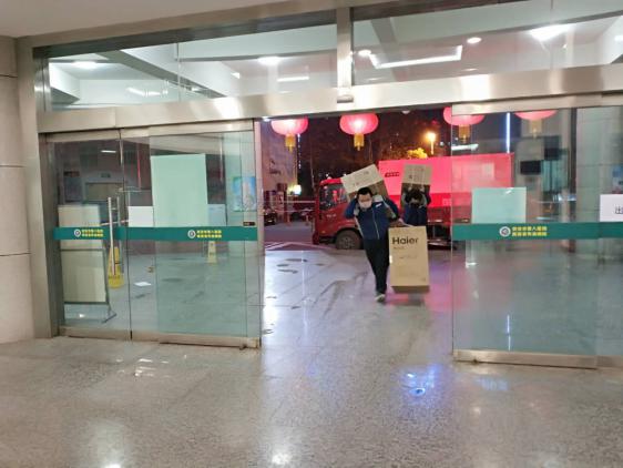 接到需求后,武漢國(guó)美攜手海爾迅速作出反應(yīng),調(diào)撥就近庫(kù)存12臺(tái)空調(diào),捐贈(zèng)給枝江市人民醫(yī)院。武漢安迅物流兩位送裝工程師接到任務(wù)后,在所有道路和小區(qū)均封閉的情況下排除萬難,以最快速度驅(qū)車于9日下午12臺(tái)空調(diào)送達(dá)到枝江市人民醫(yī)院。