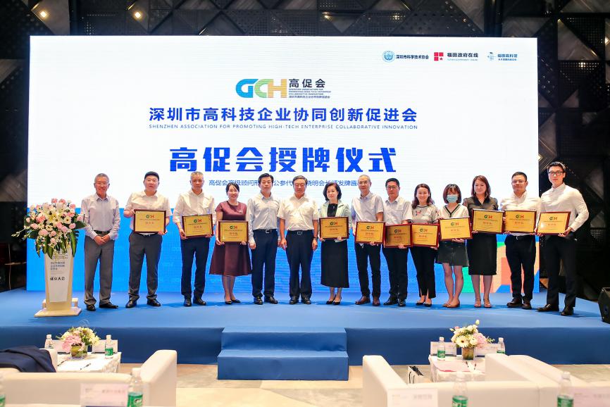 高促會會長靳曉明因北京疫情原因無法來到現(xiàn)場,由高促會高級顧問邢繼俊代表靳會長接受由榮譽會長馬蔚華和福田區(qū)科技創(chuàng)新局局長張忠暉頒發(fā)的高促會會長牌匾。
