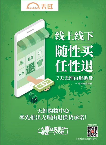 今年4月,為了營造溫暖舒心的消費環(huán)境,深圳市消費者委員會發(fā)起“線下無理由退貨承諾”,鼓勵深圳線下實體店參與,改善居民消費體驗,增強居民消費信心。天虹積極響應(yīng)號召,作為深圳首批“線下無理由退貨”的實體店參與并向廣大消費者作出服服承諾,也將“承諾”推廣至全國。值得一提的是,為了讓購物中心的消費者能共享,天虹首次嘗試在購物中心業(yè)態(tài)也深耕這項服務(wù),竭力滿足顧客需求。