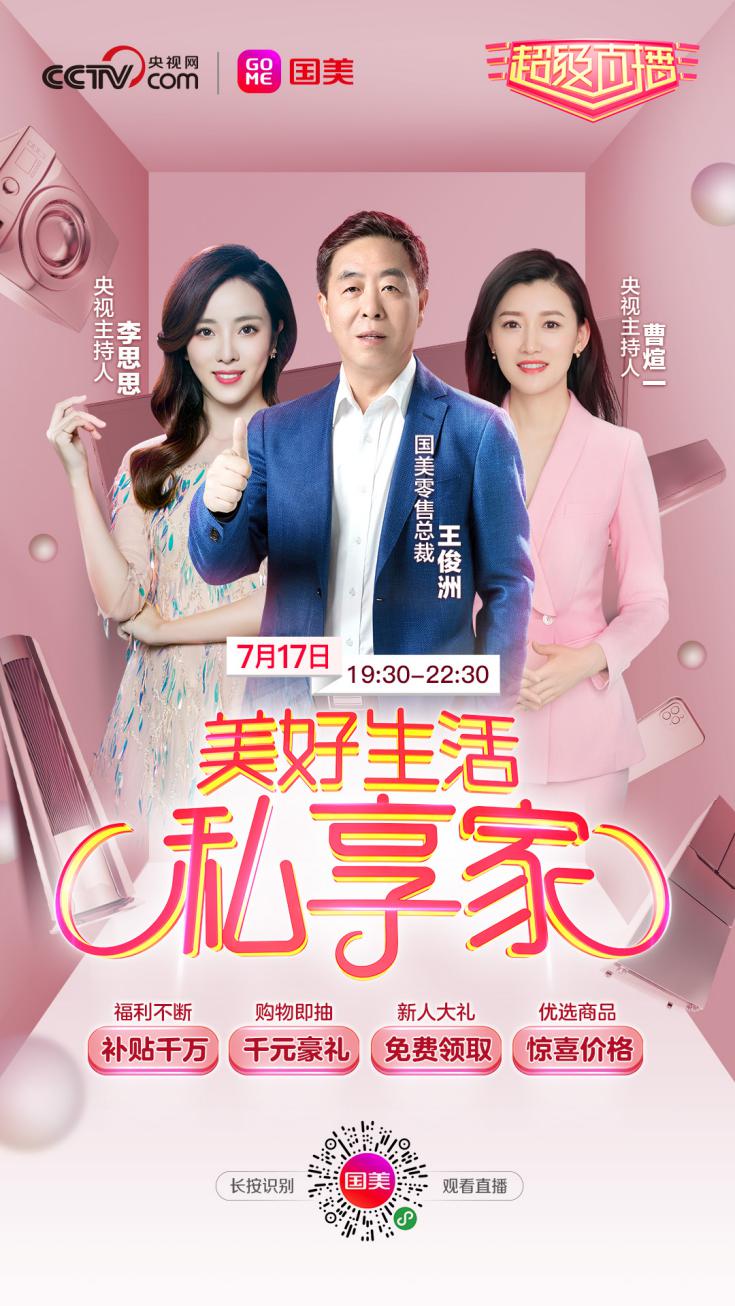 據(jù)了解,7月17日晚19:30,國(guó)美將再度攜手央視網(wǎng),共同打造以“美好生活私享家”為主題的超級(jí)直播。國(guó)美零售網(wǎng)紅總裁王俊洲再現(xiàn)江湖,央視主持人李思思、曹煊一助陣“砍價(jià)”。此外,“國(guó)美小虎”也將帶著多款家電和日用熱銷商品現(xiàn)身直播間,為消費(fèi)者帶來更多優(yōu)惠。用戶可通過央視網(wǎng)抖音號(hào)、國(guó)美微信小程序、拼多多國(guó)美官方旗艦店、京東國(guó)美官方旗艦店實(shí)時(shí)在線觀看。
