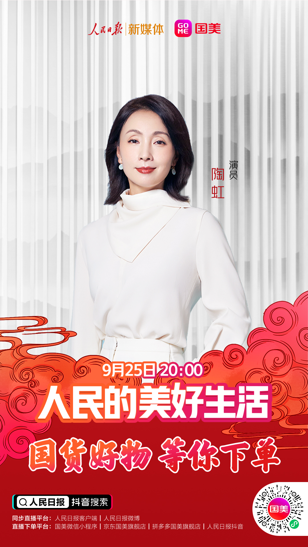 9月25日(周五)晚20點(diǎn),鎖定人民日?qǐng)?bào)抖音號(hào)、國(guó)美商城抖音號(hào)、國(guó)美微信小程序、國(guó)美京東旗艦店、國(guó)美拼多多旗艦店,關(guān)注直播,國(guó)貨好物,等你下單!人民的美好生活,不能少了你!(常軍平)