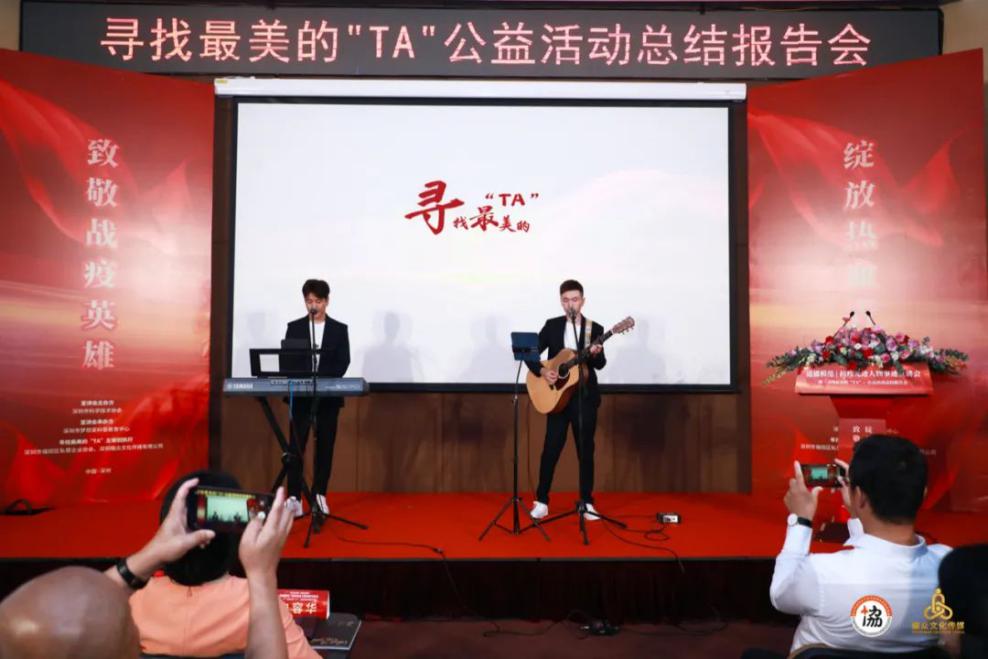 活動尾聲,會場響起一首滿懷敬意及祝愿的歌聲——尋找最美的“TA”公益活動主題曲《無名英雄》。這是由畢業(yè)于中國音樂學(xué)院并多次參演央視春晚、與郎朗同臺演奏的孫培軒與民謠吉他創(chuàng)作歌手強曉龍共同親情獻(xiàn)唱的原創(chuàng)戰(zhàn)疫歌曲,現(xiàn)場的各位嘉賓及觀眾無不感動,感謝無名的英雄們用那堅如磐石的雙肩,踐行著初心使命及鏗鏘有力的誓言。