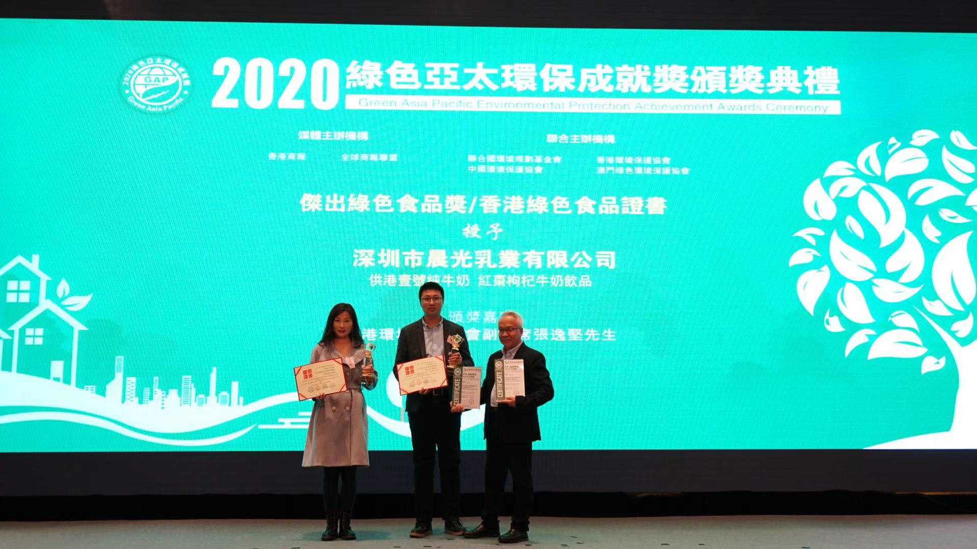 頒獎典禮上,“2020綠色亞太環(huán)保成就獎”之“杰出綠色環(huán)保先行示范區(qū)獎”授予深圳市大鵬新區(qū);“杰出環(huán)境保護企業(yè)獎”有兩家得主,分別授予河南平煤神馬環(huán)保節(jié)能有限公司、惠州市深廣田產(chǎn)業(yè)投資發(fā)展有限公司;“杰出再生能源生產(chǎn)企業(yè)獎”授予廣東亨業(yè)環(huán)??萍加邢薰荆弧敖艹隹沙掷m(xù)發(fā)展工業(yè)園區(qū)”授予中國四角樓國際珠寶創(chuàng)意產(chǎn)業(yè)園;“杰出環(huán)保進步獎”授予深圳市粵環(huán)科檢測技術有限公司研發(fā)的土壤環(huán)境監(jiān)測系統(tǒng);“杰出健康保健產(chǎn)業(yè)貢獻獎”授予深圳騰云健康服務有限公司;“綠色亞太2019環(huán)保成就獎”之“杰出環(huán)保終身成就獎”分別授予孫毅先生、鄭行祥先生;“杰出環(huán)保領軍人物獎”授予白鵬先生;“綠色亞太2019環(huán)保成就獎”之“杰出綠色食品獎”,獲獎產(chǎn)品有3種:通過香港國際檢測中心檢測并獲頒香港(國際標準)食品安全證書的深圳市晨光乳業(yè)有限公司的供港壹號純牛奶、紅棗枸杞牛奶飲品,以及上帝之草康養(yǎng)產(chǎn)品有限公司的上帝之草康養(yǎng)產(chǎn)品系列;該產(chǎn)品系列還獲得“杰出綠色健康創(chuàng)新產(chǎn)品獎”;“綠色亞太2019環(huán)保成就獎”之“杰出綠色低碳產(chǎn)品獎”授予河南平煤神馬環(huán)保節(jié)能有限公司研發(fā)的發(fā)泡陶瓷產(chǎn)品;“杰出健康保健產(chǎn)品獎”授予深圳騰云健康服務有限公司所產(chǎn)的希麗量子冷凝膠;香港特區(qū)政府商務及經(jīng)濟發(fā)展局副局長陳百里博士,在頒獎典禮上的視頻連線致辭中衷心祝賀得獎者。