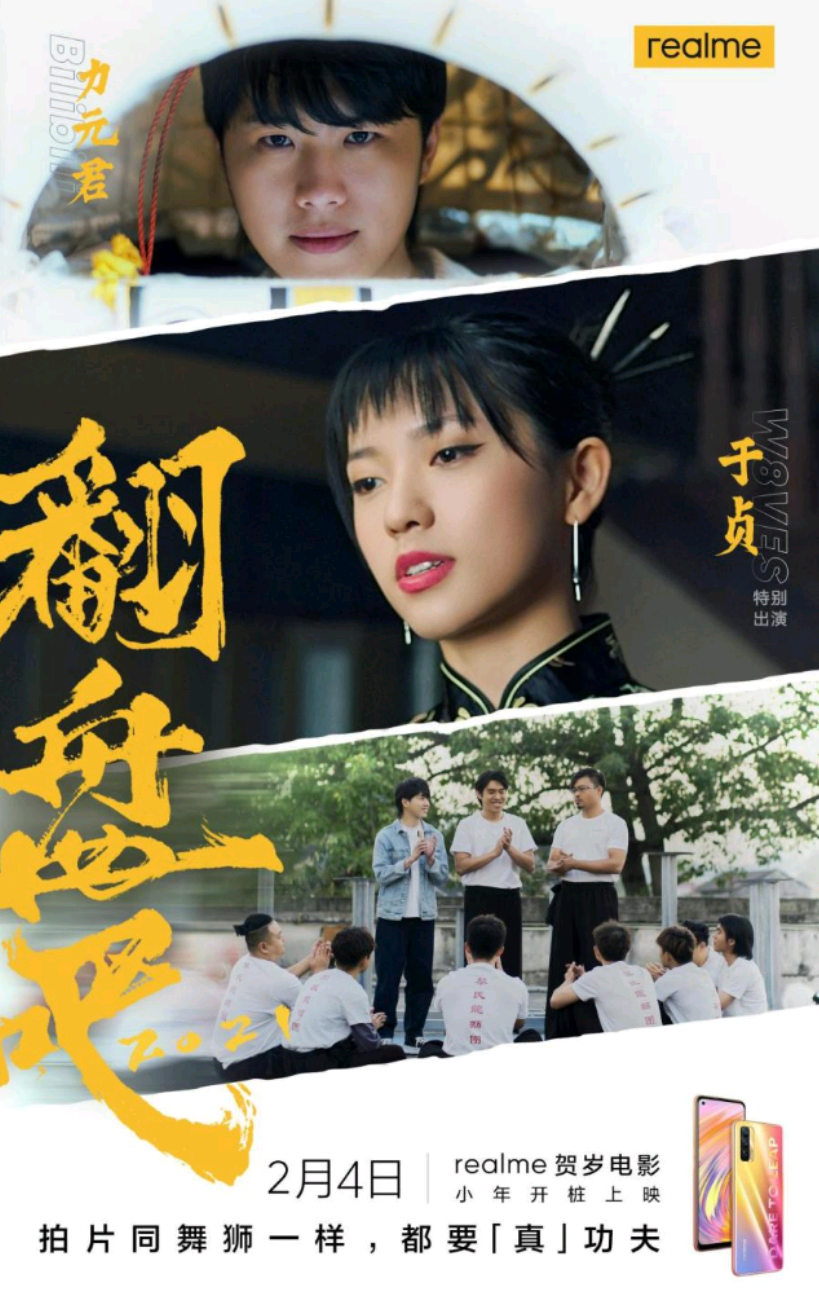 賀歲微電影《翻盤(pán)吧2021》以中國(guó)傳統(tǒng)民間藝術(shù)舞獅為背景,講述了廣東醒獅武館新一代傳承人阿正通過(guò)不懈的努力,聯(lián)合師兄弟一起振興武館,并在B站UP主力元君的鼓勵(lì)下,用真我V15國(guó)潮錦鯉手機(jī)拍攝醒獅視頻,體現(xiàn)年輕一代敢于突破傳統(tǒng),重振武館,推廣及傳承傳統(tǒng)文化。此外,個(gè)性鮮明的說(shuō)唱新星于貞也參與演出,共同演繹“越努力越幸運(yùn)”的翻盤(pán)故事。