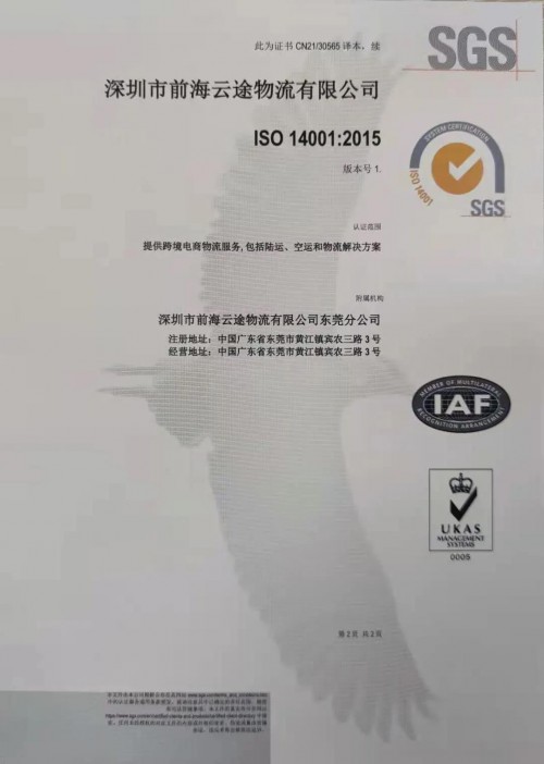 東方網(wǎng)2021年3月11日訊 繼2020年初獲得ISO9001質(zhì)量管理體系認(rèn)證后,近日云途物流順利通過專家組評審,再次獲得由國際公認(rèn)的檢驗(yàn)、鑒定、測試和認(rèn)證機(jī)構(gòu)SGS頒發(fā)的ISO14001環(huán)境管理體系、ISO45001職業(yè)健康與安全管理體系認(rèn)證。