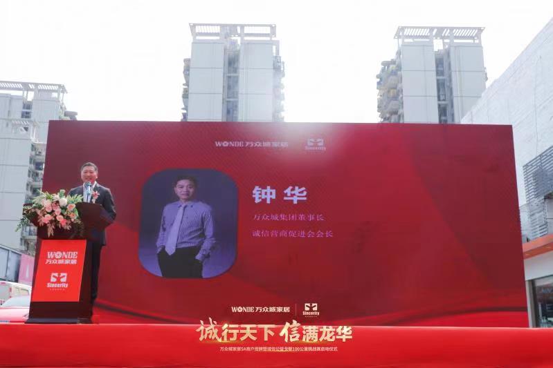 儀式上,誠商會創(chuàng)會會長、萬眾城集團董事長鐘華致歡迎辭,他說,萬眾城集團自2009年開始做誠信建設,創(chuàng)立了“誠信基金”“誠信沙龍”“5A級誠信商戶評選”三板斧,將商戶有效投訴從十二年前的91起,商戶自覺誠信經營,往后每年未超過5起。萬眾城既是誠信建設者,也是受益者,投訴率和理賠率逐年下降,商家營業(yè)額逐年上升。經過嚴格的篩選和評審,萬眾城家居評出了2020年度5A商戶共346戶,并在當天的儀式上給20名5A商戶代表授牌。