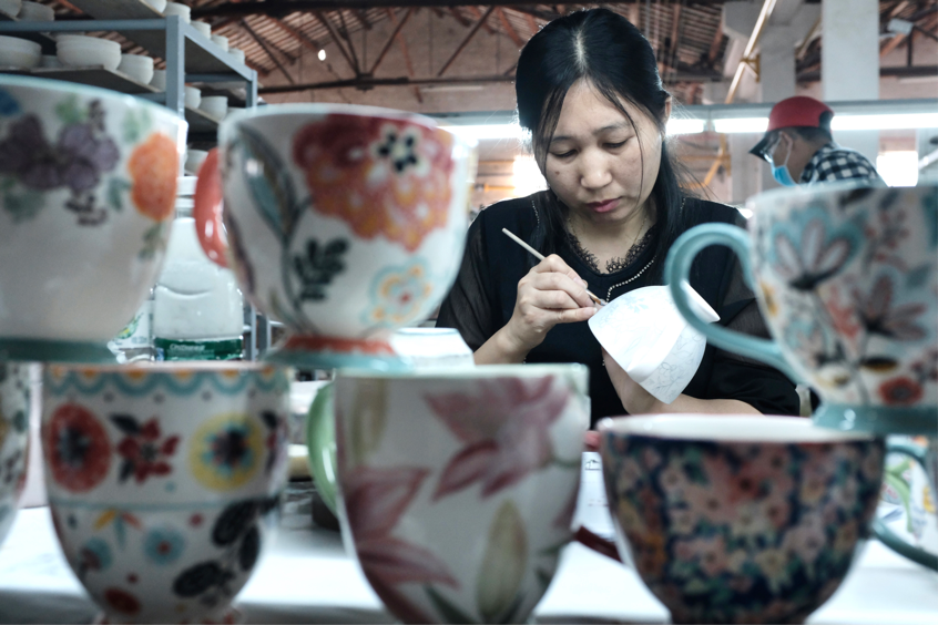 “電商平臺能夠滿足和培養(yǎng)消費(fèi)者需求,讓陶瓷餐具逐漸成為高頻消費(fèi)品?!辈虝匀葜赋?。2018—2020年,這一系列的佳佰彩繪杯,在京東平臺的銷量連續(xù)三年復(fù)合增長率超過100%。去年,聯(lián)源在國內(nèi)市場的銷售額較2019年增長了50 %,達(dá)到歷年最佳,內(nèi)銷比重也由此前的25%提升到了50%。