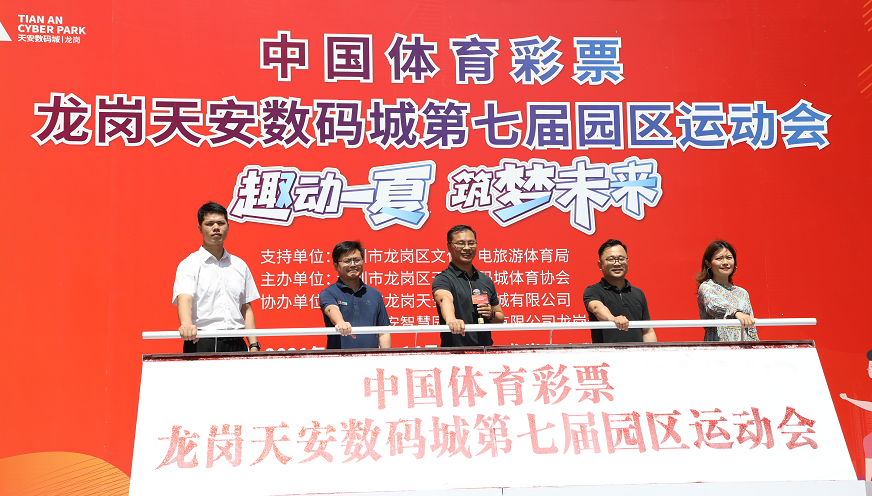 本屆運動會以“趣動一夏筑夢未來”為主題,由深圳市龍崗區(qū)文化廣電旅游體育局支持,深圳市龍崗區(qū)天安數(shù)碼城體育協(xié)會主辦,深圳市龍崗天安數(shù)碼新城有限公司、深圳天安智慧園區(qū)運營有限公司龍崗分公司協(xié)辦。深圳市龍崗區(qū)文化廣電旅游體育局副局長李震、龍崗天安數(shù)碼城副總經(jīng)理陳文鑫、龍崗區(qū)文化廣電旅游體育局體育事業(yè)促進科副科長任翠華、天安智慧園區(qū)運營有限公司總經(jīng)理助理龍崗分公司總經(jīng)理梁義榮、龍崗天安數(shù)碼城產(chǎn)業(yè)事業(yè)部總監(jiān)白麗等領(lǐng)導(dǎo)嘉賓為本屆運動會推桿啟動開幕。