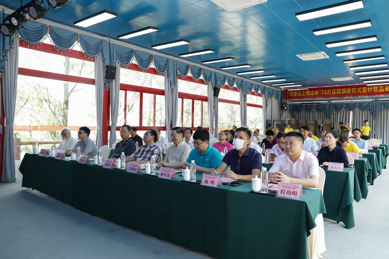 見圳客戶端·深圳新聞網(wǎng)2021年5月18日訊(記者 常軍平)“觀音山上觀山水”70萬征聯(lián)活動終有結(jié)果,評選出15句優(yōu)秀下聯(lián),最佳下聯(lián)空缺,并于5月17日在東莞觀音山舉行了頒獎儀式及妙聯(lián)品鑒座談會?;顒蝇F(xiàn)場,楹聯(lián)家們雅聚一堂,共同見證了本次征聯(lián)活動優(yōu)秀獎的頒出。以楹聯(lián)為媒,進行交流互動?;顒悠陂g,組委會代表東莞觀音山將結(jié)余款項67萬元悉數(shù)捐給東莞樟木頭鎮(zhèn)慈善會。鑒于觀音山在推動楹聯(lián)文化的傳承發(fā)展做出的突出貢獻,被中國楹聯(lián)學(xué)會授予“中國楹聯(lián)文化名山”稱號。