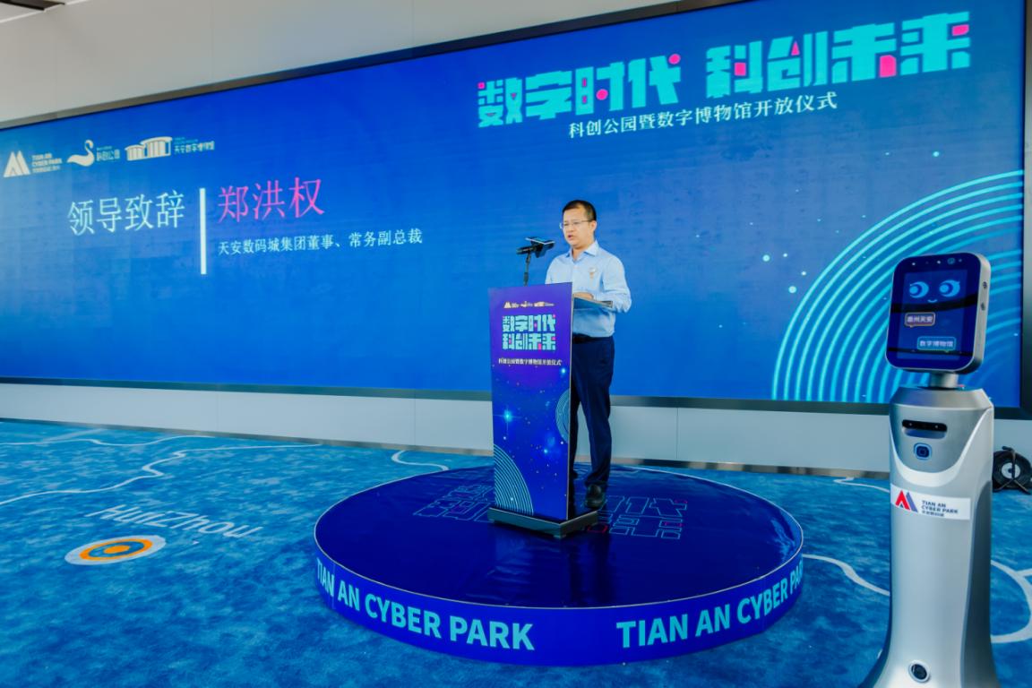 活動開場,天安數(shù)碼城集團(tuán)董事、常務(wù)副總裁鄭洪權(quán)致歡迎辭。鄭權(quán)表示,惠州天安數(shù)碼城科創(chuàng)公園與數(shù)字博物館的建設(shè),是順應(yīng)數(shù)字化、網(wǎng)絡(luò)化、智能化融合發(fā)展新趨勢,推動智慧城市發(fā)展和智慧產(chǎn)業(yè)生態(tài)體系建設(shè)效應(yīng)的呈現(xiàn)?;葜萏彀矓?shù)碼城將緊抓惠州蝶變的關(guān)鍵時機(jī),圍繞“科學(xué)科技科普科幻科創(chuàng)科研科教”七科立園,深度融入省“一核一帶一區(qū)”區(qū)域發(fā)展格局,用集團(tuán)具有生命力和成長性的運(yùn)營體系,適配惠州城市發(fā)展模式,打造具有惠州產(chǎn)業(yè)基礎(chǔ)特色的產(chǎn)業(yè)園區(qū),以企業(yè)的發(fā)展,促進(jìn)產(chǎn)業(yè)的優(yōu)化和城市的進(jìn)化,攜手政府、企業(yè)、社區(qū)一同打造充滿生機(jī)和無限科技想象的科技園區(qū)。