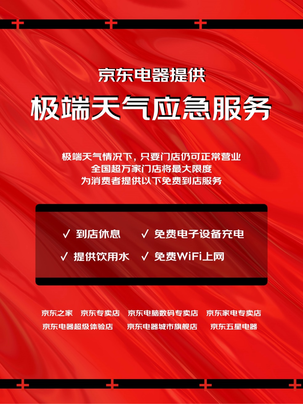 京東電器第一時(shí)間推出了極端天氣應(yīng)急服務(wù),聯(lián)動(dòng)當(dāng)?shù)厝钥烧I(yíng)業(yè)的京東之家、京東專賣店、京東電腦數(shù)碼專賣店等線下門店,為市民提供汛情避險(xiǎn)場(chǎng)所和應(yīng)急服務(wù)。未來(lái)在遇到極端天氣的情況下,京東電器在全國(guó)的線下門店,包括京東之家、京東專賣店、京東電腦數(shù)碼專賣店、京東家電專賣店、京東電器超級(jí)體驗(yàn)店、京東電器城市旗艦店、京東五星電器等門店只要仍可正常營(yíng)業(yè),將最大限度為附近的消費(fèi)者提供到店休息、飲用水、電子設(shè)備充電、 WiFi上網(wǎng)等免費(fèi)應(yīng)急服務(wù)。