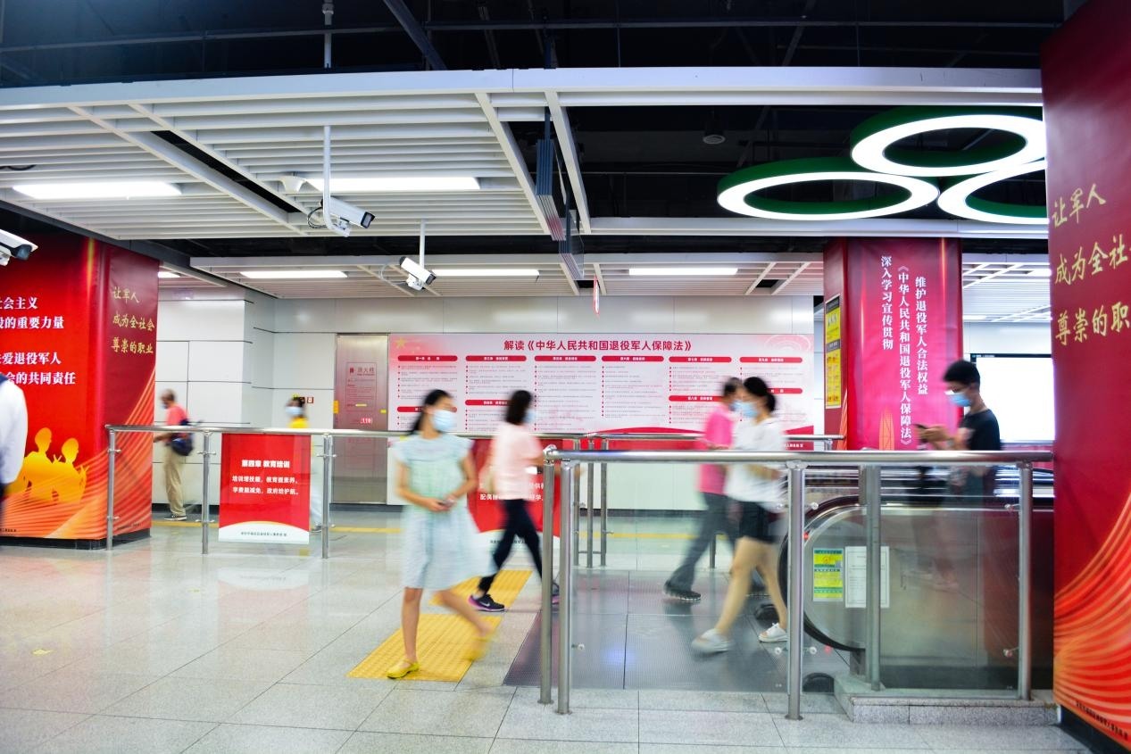在地鐵石廈站,站廳包柱上的“維護退役軍人合法權(quán)益”、“讓軍人成為全社會尊崇的職業(yè)”等標(biāo)語映入眼簾,為普法宣傳增添了濃厚氛圍。在安檢口處,還設(shè)立了解讀《中華人民共和國退役軍人保障法》墻貼,精心設(shè)計的公益宣傳吸引了很多市民駐足觀看。