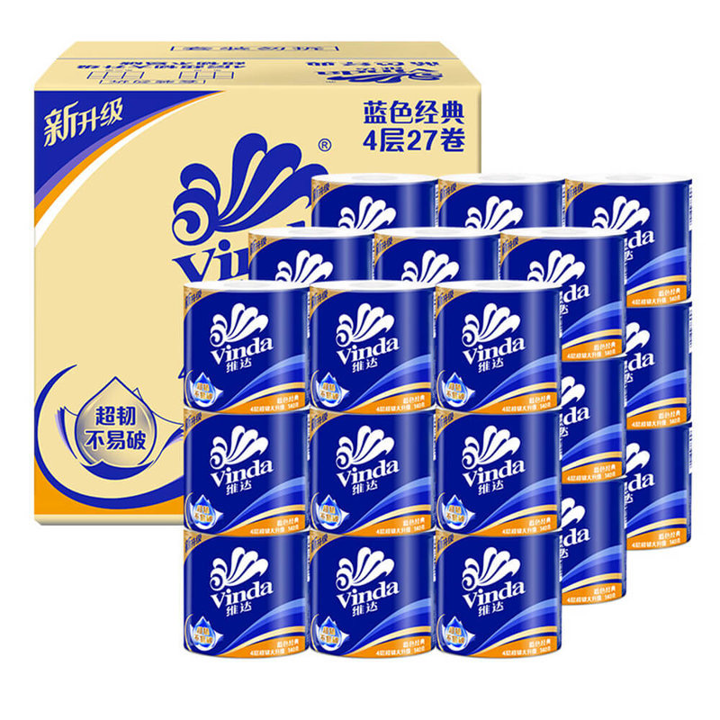 超韌厚實(shí)維達(dá)卷紙藍(lán)色經(jīng)典濕水不易破