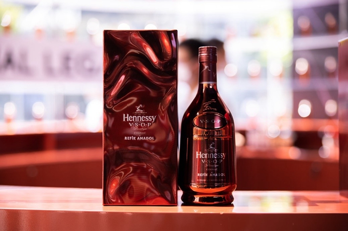 通過(guò)展示著軒尼詩(shī)V.S.O.P雷菲克·安納多爾特別版禮盒的“邑想酒廊”,來(lái)到“邑想密室”,藝術(shù)家特別打造的大型沉浸式視聽(tīng)裝置《Sense of Heritage》在此震撼呈現(xiàn)。這個(gè)充滿未來(lái)感的“無(wú)限空間”,用于投影其在干邑區(qū)所收集的數(shù)據(jù)圖像。置身其中,幻變的色彩、形狀、浮雕、紋理,令軒尼詩(shī)品鑒委員會(huì)專家的各種情感可視可觸可感,足以打通感官鏈路,引人“邑”想天開(kāi)。