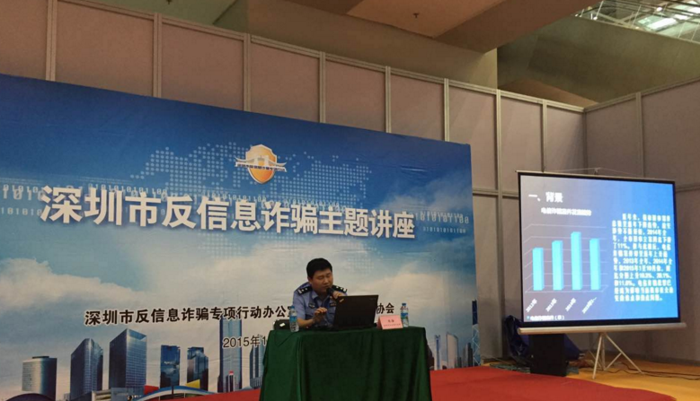 “針對(duì)信息詐騙犯罪高發(fā)的態(tài)勢(shì),今年8月1日,我市開(kāi)展以深圳市政法委書(shū)記李華楠同志為領(lǐng)導(dǎo)小組組長(zhǎng)的反信息詐騙犯罪專(zhuān)項(xiàng)行動(dòng),為期半年。此次專(zhuān)項(xiàng)行動(dòng)主要集中公安、銀行、通信、工商、網(wǎng)絡(luò)企業(yè)等專(zhuān)業(yè)力量共同打擊信息詐騙犯罪。經(jīng)過(guò)合成打擊、宣傳防范、警信警銀合作、對(duì)策研究等多個(gè)方面的工作,8月1日至10月25日,全市共立信息詐騙案件環(huán)比下降了13.9%;破信息詐騙案件280宗,環(huán)比260宗上升了7.7%;逮捕涉信息詐騙犯罪嫌疑人190人,環(huán)比149人上升了27.5%;打掉涉信息詐騙犯罪團(tuán)伙19個(gè),環(huán)比19個(gè)持平;凍結(jié)涉案賬戶(hù)203個(gè),資金3089.9萬(wàn)元。”深圳市公安局刑偵局大隊(duì)長(zhǎng)朱海在講座上分享道。