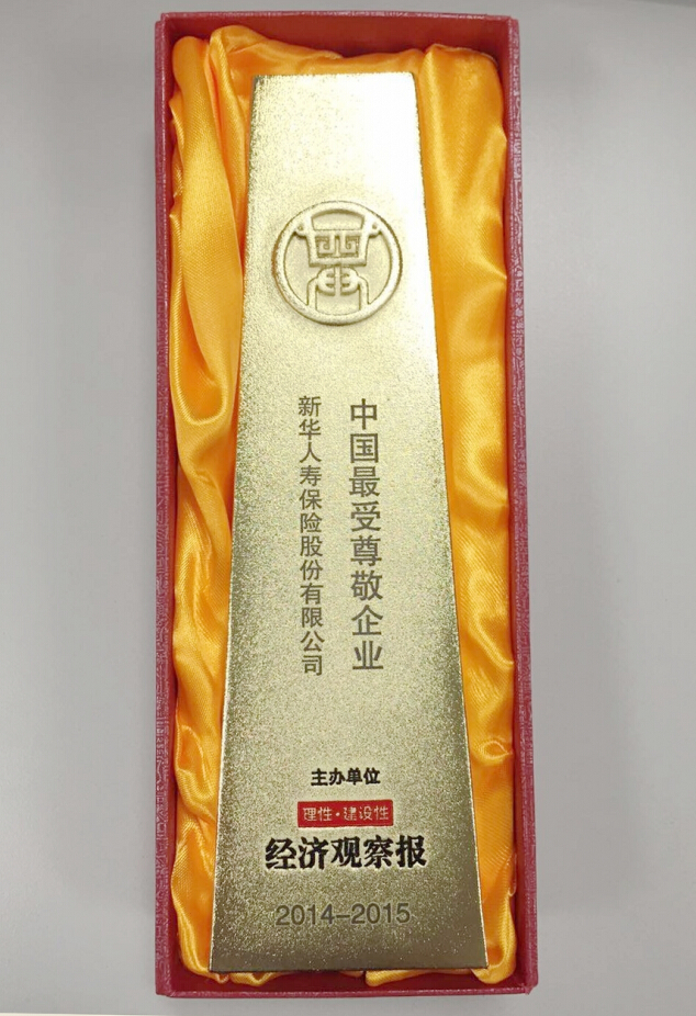 2015年7月,在經(jīng)濟(jì)觀察報(bào)主辦的2014-2015中國最受尊敬企業(yè)評選中,新華獲評“中國最受尊敬企業(yè)”獎。中國綠色保險(xiǎn)最佳典范企業(yè)2015年8月,在經(jīng)濟(jì)參考報(bào)主辦的“2015中國綠色資本論壇暨中國綠色資本品牌榜”活動中,新華保險(xiǎn)榮獲“中國綠色保險(xiǎn)最佳典范企業(yè)”。2015胡潤品牌百強(qiáng)9月17日,胡潤研究院發(fā)布《2015胡潤品牌榜》顯示,新華保險(xiǎn)以120億元的品牌價值占據(jù)榜單第68名,首次進(jìn)入榜單前百強(qiáng),同比強(qiáng)勁上升51位。品牌價值漲幅高達(dá)287%,漲幅居金融業(yè)之首,且是唯一一家進(jìn)入增值品牌十強(qiáng)的金融企業(yè),顯示出新華保險(xiǎn)品牌實(shí)力的快速提升,以及公司綜合實(shí)力的顯著增強(qiáng)。