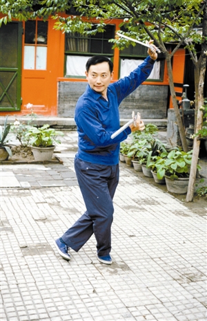1982年,梅葆玖在北京自家院內(nèi)練功