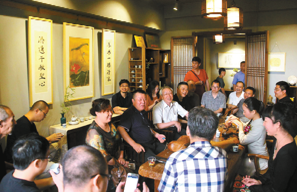 “現(xiàn)代人越來越注重生活美學,這次的展覽很貼近生活,我親眼見證這個書畫展的準備全過程,這些書畫家們既是內(nèi)容撰寫者,又是書畫創(chuàng)作者,還是設(shè)計師和裝潢師。他們親自裁剪懸掛,布置調(diào)整,茶和書畫文化結(jié)合起來,剛好與善濟堂茶禪會館作為大眾服務的生活美學體驗館的理念不謀而合?!鄙茲貌瓒U會館女主人成潔曼告訴記者。