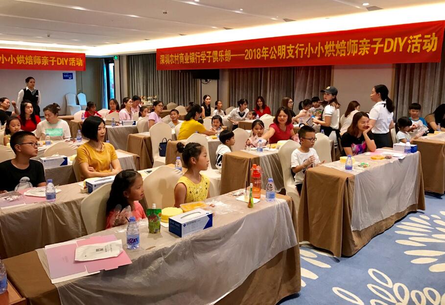 7月26日,深圳農(nóng)商行公明支行在凱雷斯頓酒店成功舉辦了“小小烘焙師”學(xué)子俱樂部活動?;顒友埩嗽@得美國國際惠爾通證書、2017年法國藍(lán)帶大中華賽區(qū)冠軍的資深烘焙師cherry老師現(xiàn)場授課。她帶領(lǐng)著現(xiàn)場的17組家庭、40余位家長和小朋友,共同完成了一堂妙趣橫生的水果裸蛋糕DIY教學(xué)課程。