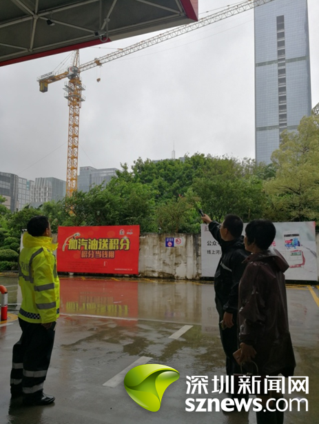 中午,粵海街道高新區(qū)社區(qū)黨委書記、婦聯(lián)主席王泳梅細心發(fā)現(xiàn)創(chuàng)新科技中心樓頂塔吊變形,馬上在臺風來臨之前,帶領工作人員冒著大雨,踩著泥濘,趕赴現(xiàn)場緊急處理,消除了一樁重大的安全隱患。