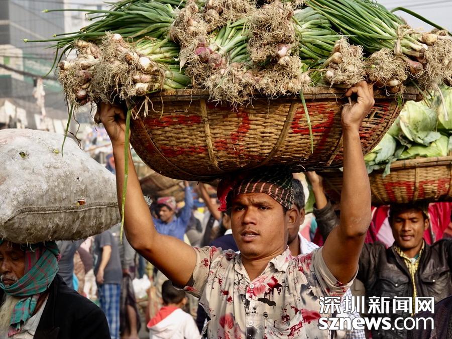 深圳新聞網(wǎng)2019年1月8日訊  在孟加拉,無論城市,還是鄉(xiāng)下,人們頭頂重物的情景,確實(shí)是無處不在的。李仁奇攝