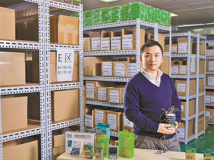 我在大學(xué)甚至更早的時(shí)候就深有體會(huì)——我有很多想法,但是缺乏必要的技術(shù)去把這個(gè)想法實(shí)現(xiàn)出來(lái)。我在國(guó)外的一個(gè)開(kāi)源硬件論壇留言說(shuō)我的體會(huì),沒(méi)想到有那么多創(chuàng)客回饋說(shuō)有同感,論壇上創(chuàng)客們的積極回應(yīng)讓我看到了商機(jī)。我發(fā)現(xiàn),很多硬件模塊因?yàn)閯?chuàng)客需要的量少,很多工廠(chǎng)不愿意生產(chǎn)。后來(lái),我想到了在國(guó)際創(chuàng)客論壇發(fā)帖征集創(chuàng)客們的需求,再到國(guó)內(nèi)電子市場(chǎng)搜集硬件加工后發(fā)給創(chuàng)客的點(diǎn)子。于是,我便做起了開(kāi)源硬件的生意?!盀閯?chuàng)客服務(wù)”,這是我創(chuàng)業(yè)的最初目標(biāo)。