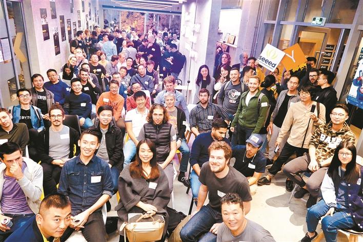 ▲2018年12月,硅谷著名創(chuàng)業(yè)孵化器Y Combinator成員到訪(fǎng)柴火創(chuàng)客空間,潘昊(前排左一)在柴火創(chuàng)客空間發(fā)起社區(qū)分享活動(dòng)。