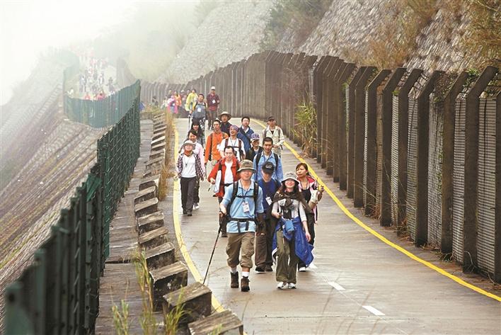 ▲參加深圳百公里活動的市民在徒步中。