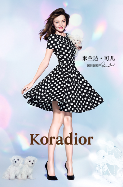 Koradior邀請(qǐng)國際超模米蘭達(dá)·可兒成為其形象代言人。春夏形象大片登陸深圳機(jī)場(chǎng);