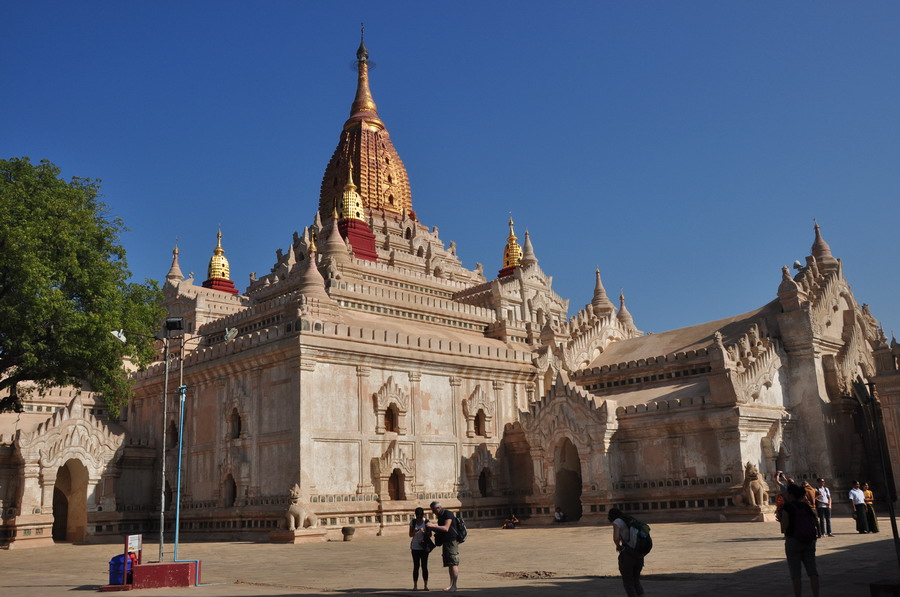 包括最古老的瑞西光塔,它金碧輝煌,可以媲美仰光大金塔;建筑最優(yōu)美的阿蘭達塔造型、工藝超群,最能代表緬甸早期的古塔建筑;最高的大比紐塔高達70多米,相當(dāng)于20層樓房;還有面積最大、墻體最厚的狄馬揚意塔等等。李仁奇攝
