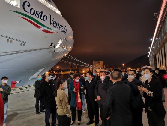 為確保1.26清晨電視電話會議順利召開,郵輪母港工程師連夜趕回公司調(diào)試設(shè)備;港口值班經(jīng)理尹犇接到海關(guān)急需手持式體溫測量儀的消息后,凌晨2點騎自行車前往公司將三臺手持式體溫測量儀交接到海關(guān)人員手中,為海關(guān)排查歌詩達(dá)威尼斯號郵輪旅客體溫做好保障工作,深夜疫情下的街道顯得格外冷情。