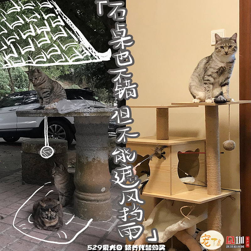 外面的世界再精彩,也比不過一個(gè)能遮風(fēng)擋雨,沒有車流、毒藥威脅,三餐穩(wěn)定、四季如春的容身之處,更何況,這里還有比石桌更有趣的貓爬架和比落葉更好玩的小玩具。現(xiàn)在“高高在上”“作威作?!钡呢堖?,也是花光了一生所有運(yùn)氣,才能在無法獨(dú)自生存的小時(shí)候,遇見一個(gè)愿意照顧TA一生的“兩腳獸”。