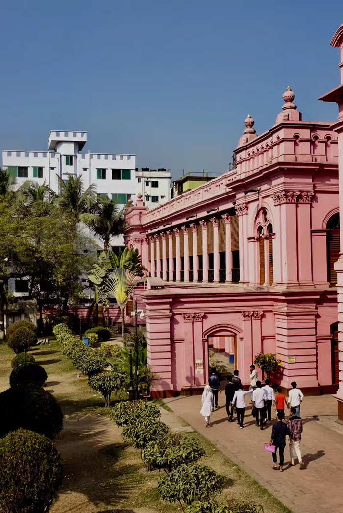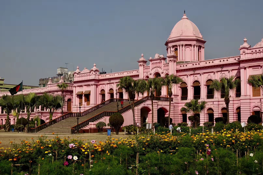 距孟加拉恒河渡口不遠的地方有一座粉紅色宮殿式的豪華建筑。那是1872年一位名叫阿赫桑曼濟勒的地主在法國人留下的倉房基礎(chǔ)上改建的私邸,后來曾在一次龍卷風(fēng)襲擊時受創(chuàng)。李仁奇 攝