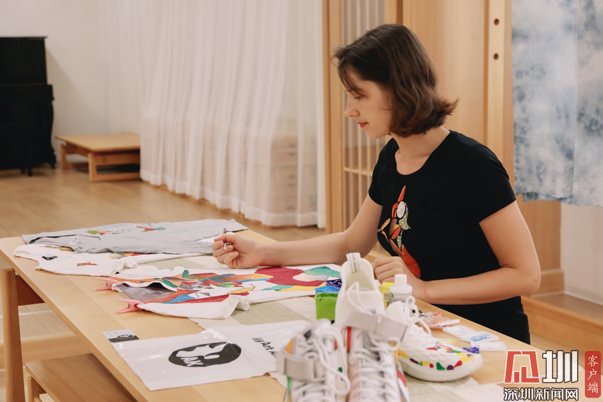 見圳客戶端·深圳新聞網(wǎng)2020年9月16日訊 (記者 黃芷苑 曹園芳)她穿著黑色的T恤和運動鞋——上面色彩斑斕的設計格外顯眼,這是她自己的設計作品,將藝術(shù)與時尚完美地結(jié)合在了一起。她就是深圳思富藝術(shù)文化有限公司創(chuàng)始人Kovalenko Alevtina,一位來自俄羅斯的藝術(shù)家。